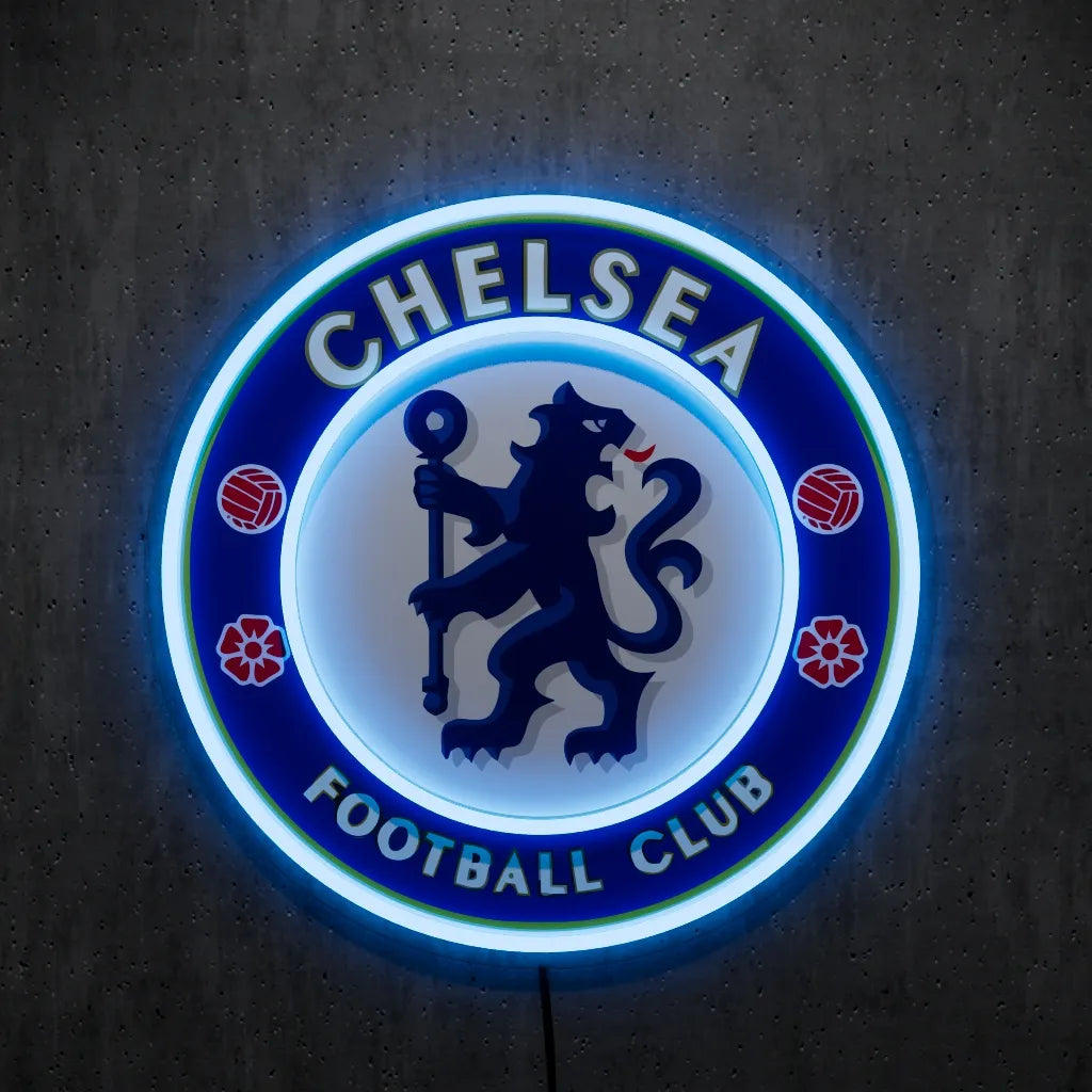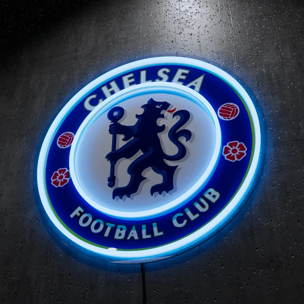 Light up your room with pride using this Chelsea FC LED Wall Light! Crafted with high-quality acrylic and bright LED lighting, this wall-mounted sign perfectly showcases the club’s iconic crest in striking blue. It’s the ideal decoration for any fan’s bedroom, living space, game room, or office.