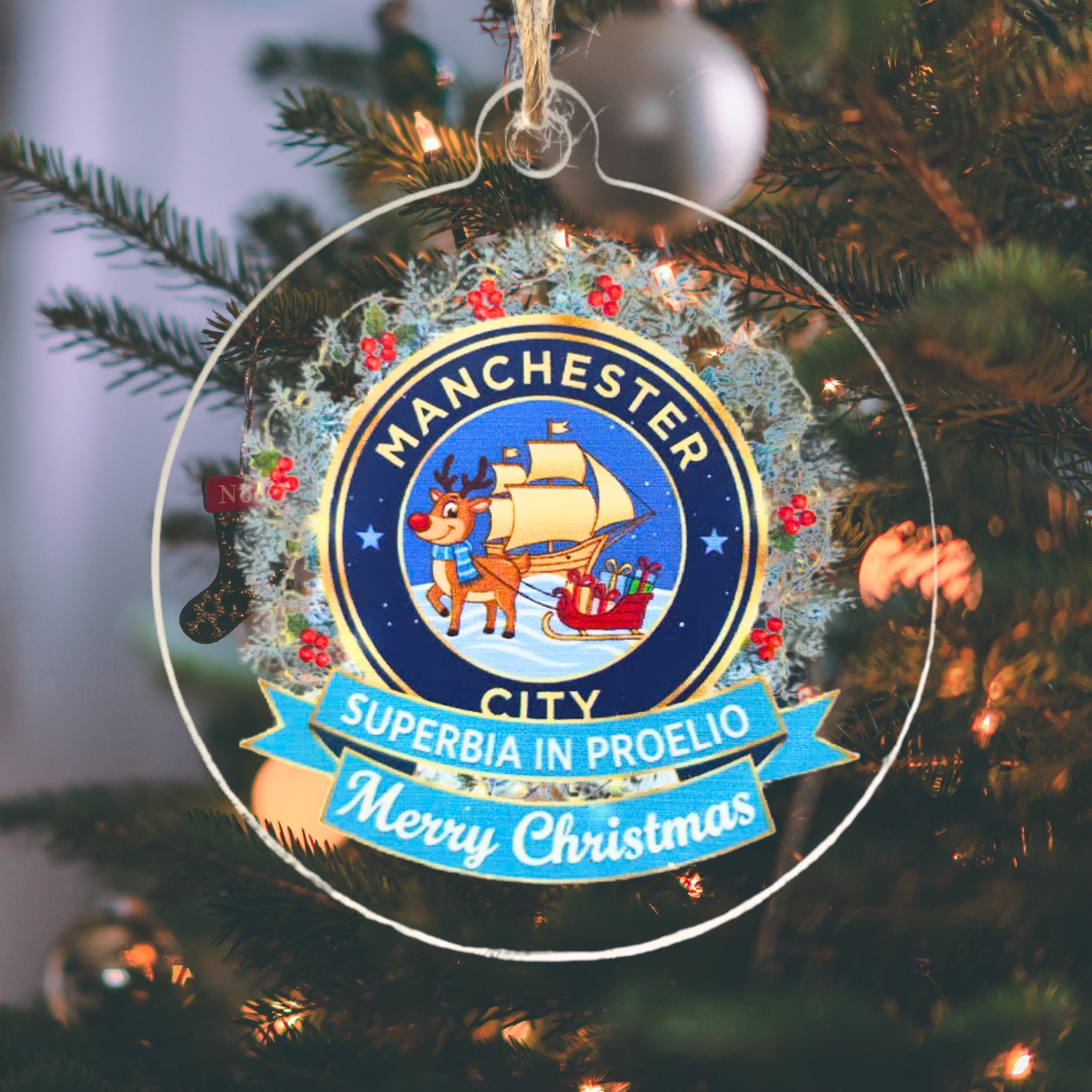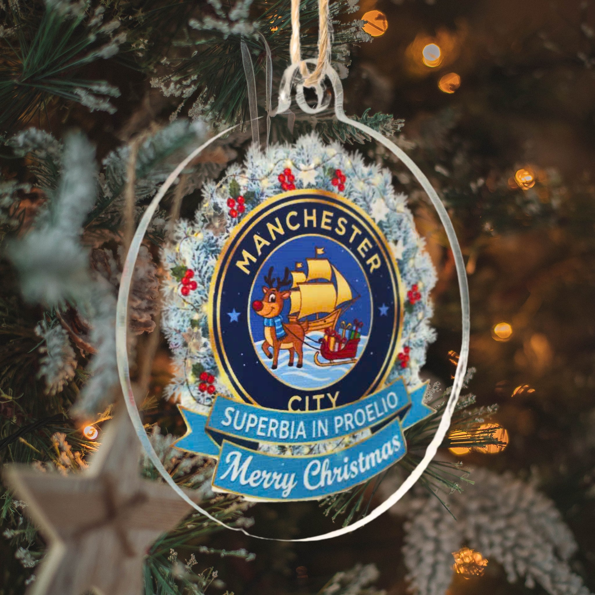 Designed for loyal Man City fans, this elegant piece brings together football passion and holiday cheer, making it perfect for your Christmas tree, home, or as a thoughtful gift for any supporter. 🎄