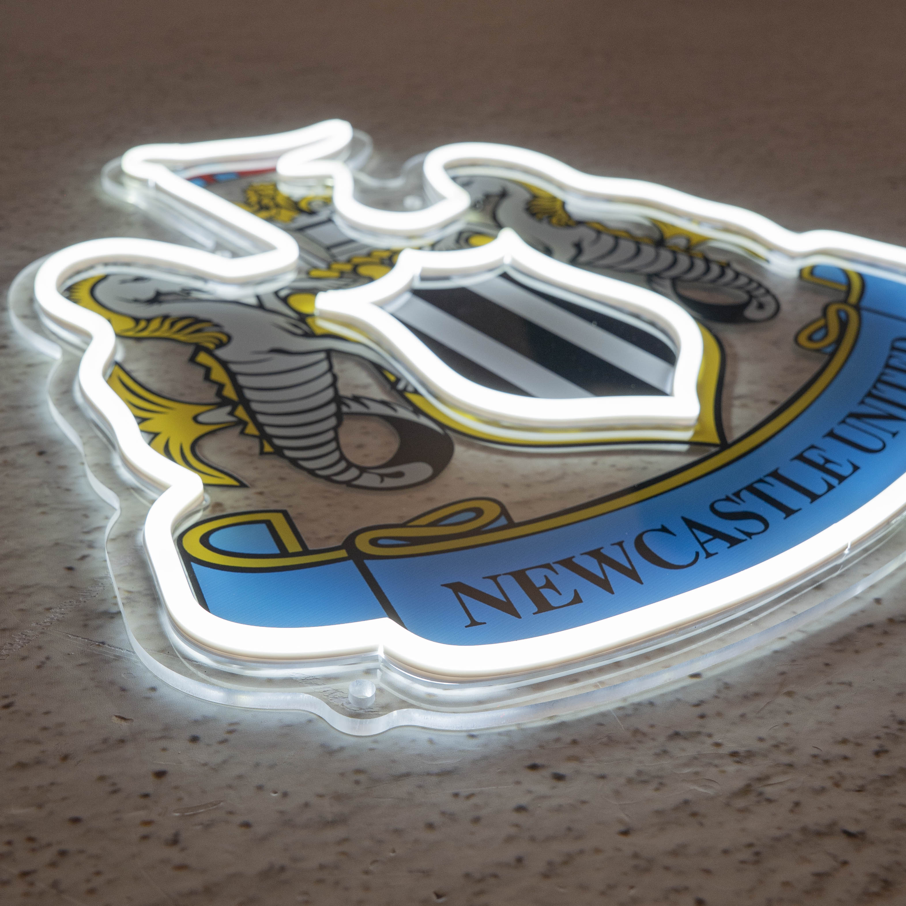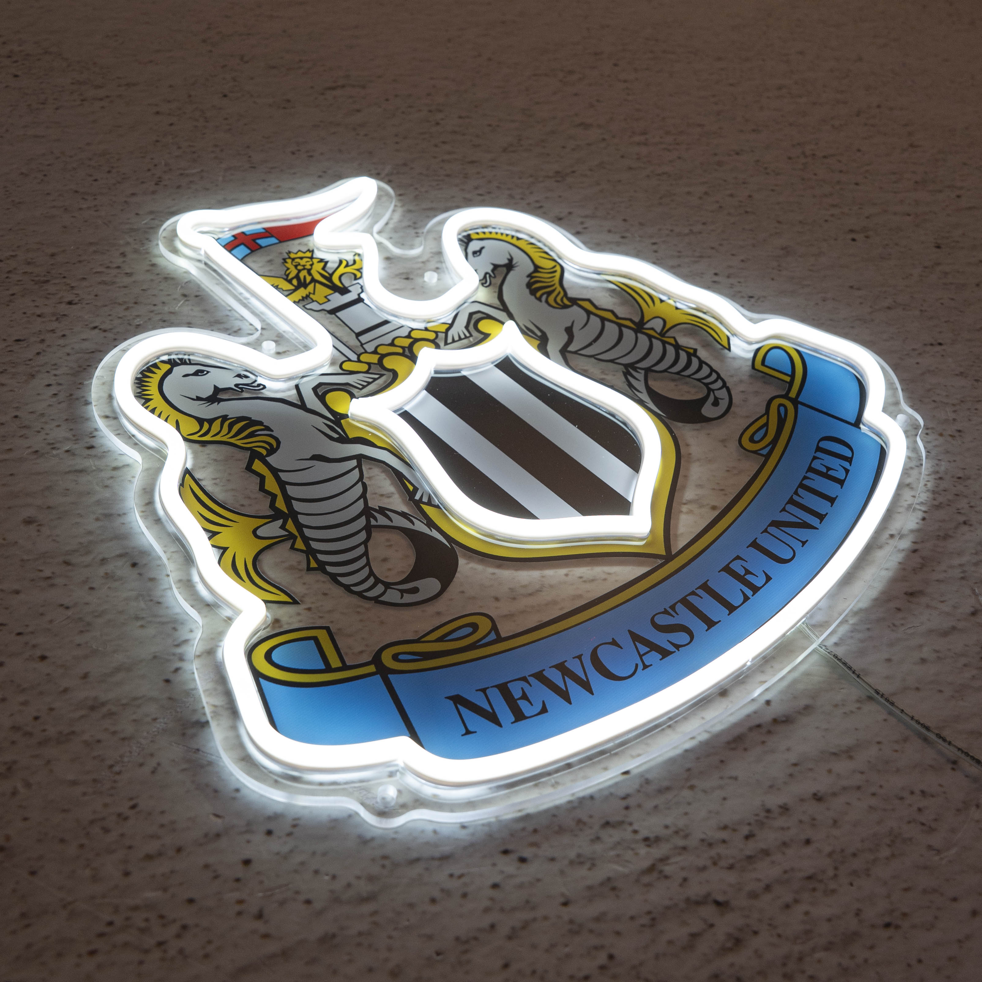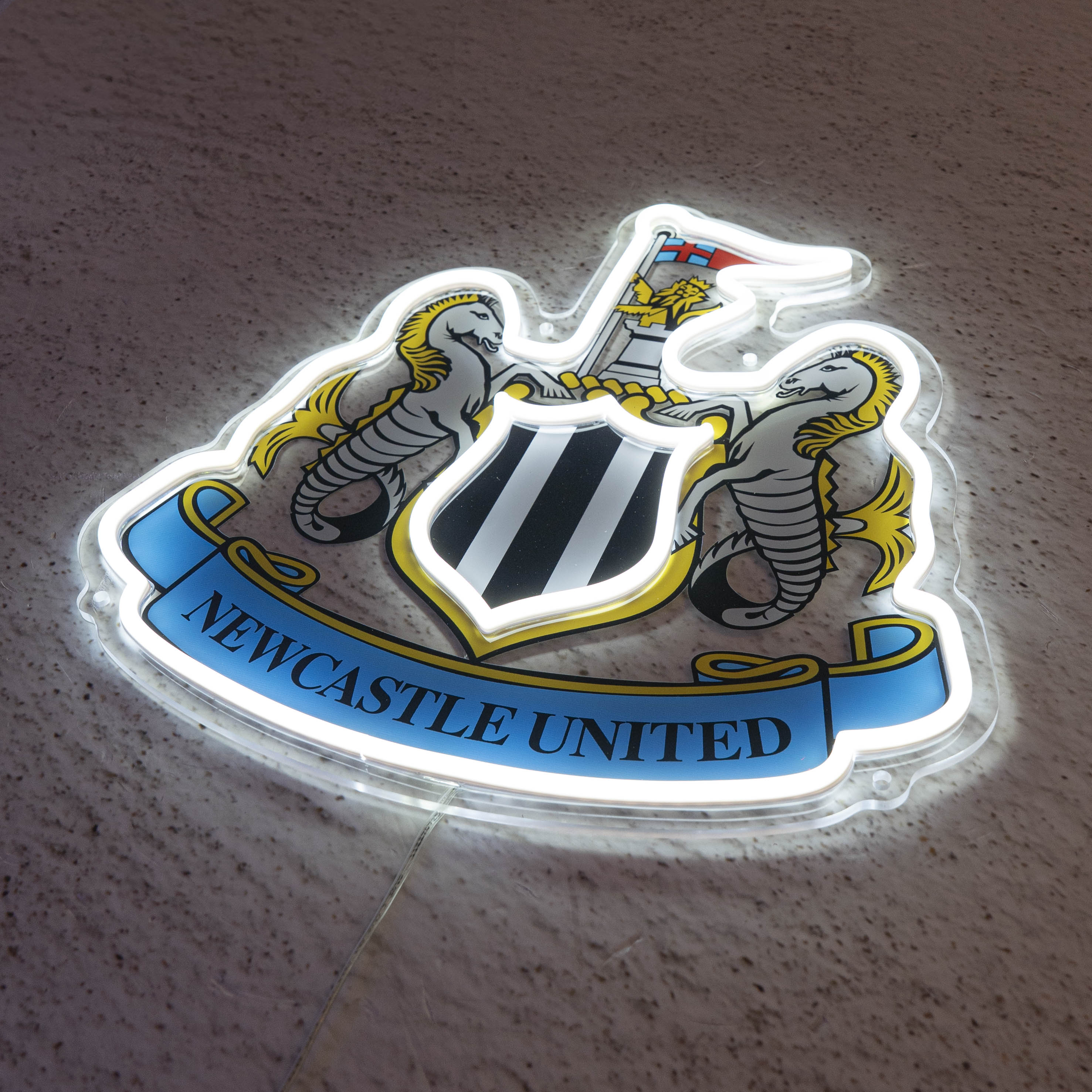 Light up your room with pride using this Newcastle United FC LED Wall Light! Crafted with high-quality acrylic and bright LED lighting, this wall-mounted sign perfectly showcases the club’s iconic crest in striking blue. It’s the ideal decoration for any fan’s bedroom, living space, game room, or office.