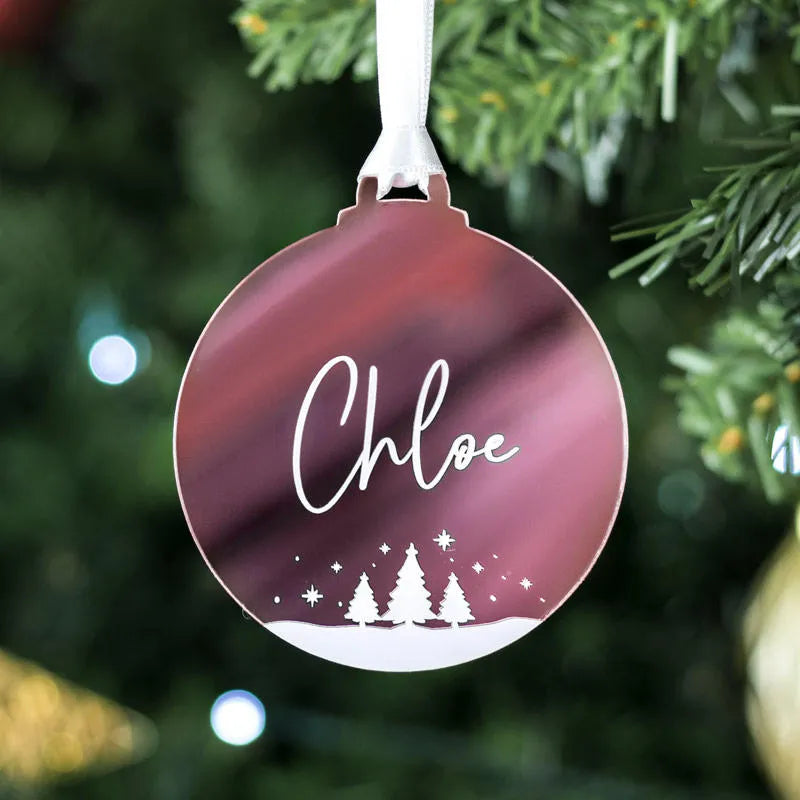 Add a touch of modern glamour and personalized sparkle to your tree with our custom mirrored ornaments. The stunning reflective surface makes this a standout piece and a chic holiday gift.