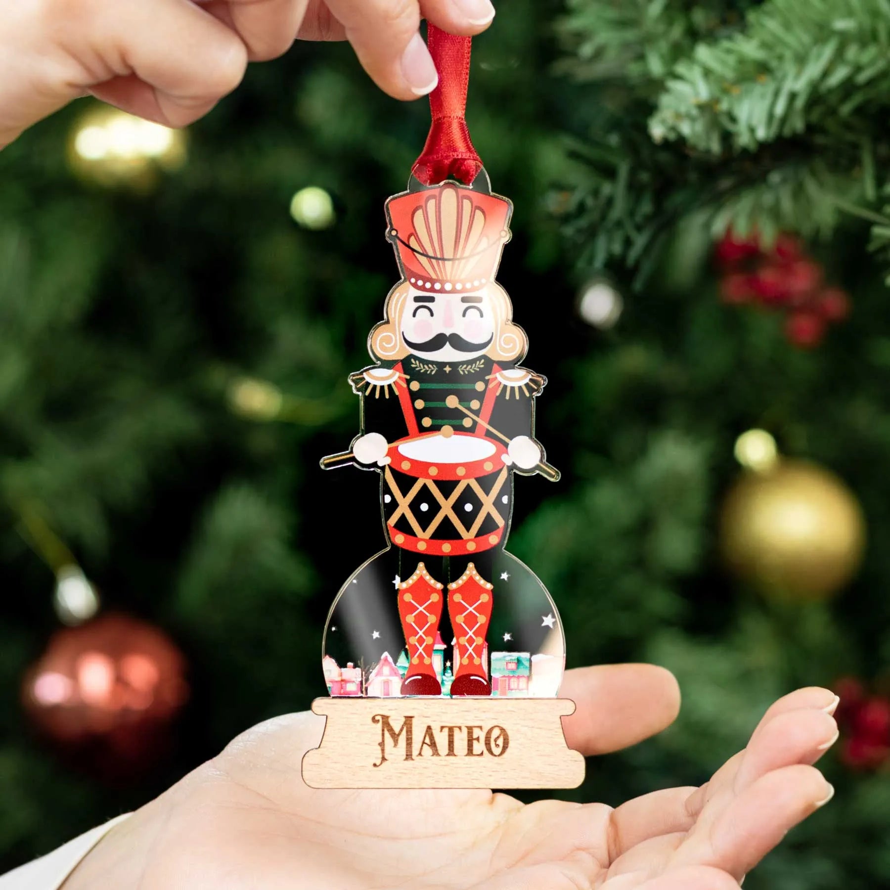 Classic Festive Design: Features a beautifully detailed drummer nutcracker standing over a miniature, snowy winter village scene.