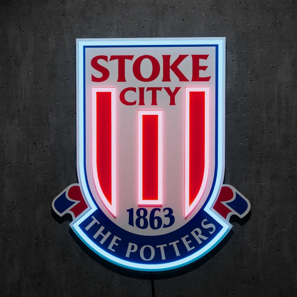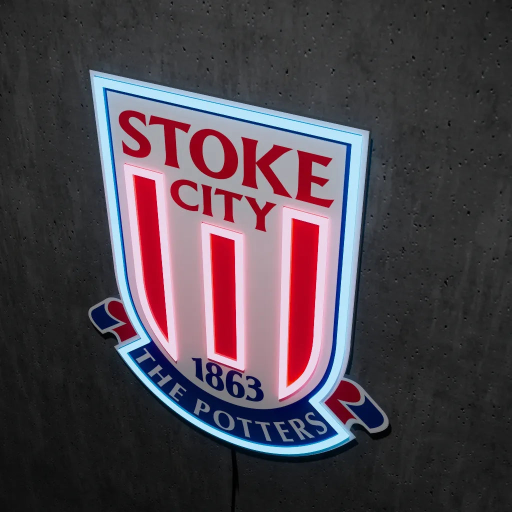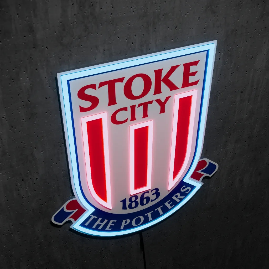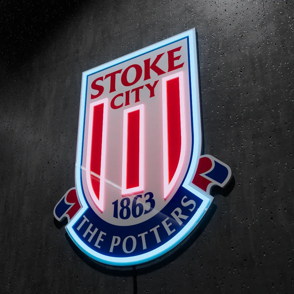 Light up your room with pride using this Stoke City FC Badge Neon Crafted with high-quality acrylic and bright LED lighting, this wall-mounted sign perfectly showcases the club’s iconic crest in striking blue. It’s the ideal decoration for any fan’s bedroom, living space, game room, or office.